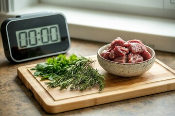 Digital alarm clock glows on bedside table near cozy bed for peaceful morning wake-up.