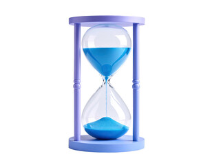 Colorful hourglasses with gears on a blue background. Concept of time, productivity, and efficiency.