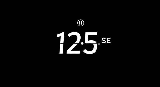 A digital display against a black background shows a timer with "12.5 se" and pause icon