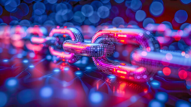 Blockchain technology concept with glowing chain and binary code