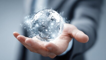 Business team engaging in fun future planning with crystal ball
