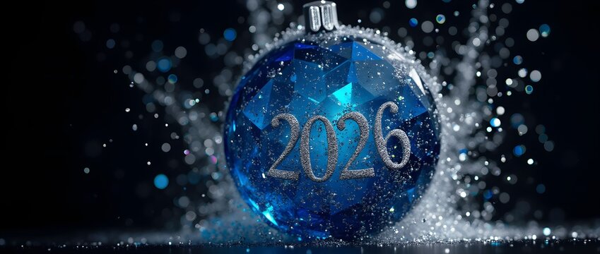 Faceted crystal sphere reflects starburst light on glossy surface