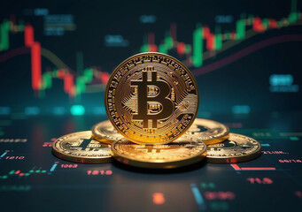 Coins stacked on a table with luminous background, representing investment, savings, and financial growth in digital economy, cryptocurrency, and revenue generation.