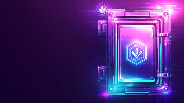 Futuristic cyber security interface with neon key and digital elements