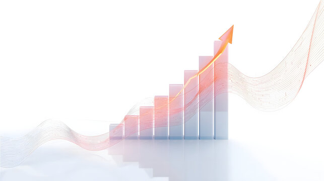 Multiple upward trending bar graphs with red arrows indicating growth