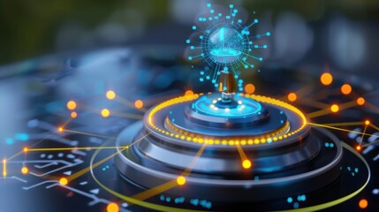 Futuristic Digital Interface with Connected Nodes and Global Network Visualization on a Circular Platform