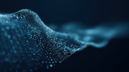 A futuristic digital landscape of glowing blue waves formed by a grid of luminous particles.