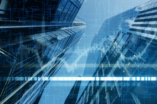 Abstract financial chart overlay on blue gradient background showing market trends, visualization, abstract