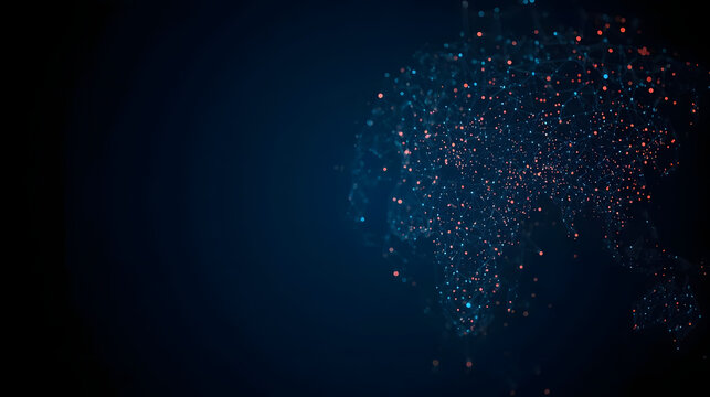 Vibrant network connections glowing in dark blue background
