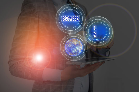 Text sign showing Browser. Business photo text Computer program Graphical user interface Displaying HTML files Elements of this image furnished by NASA