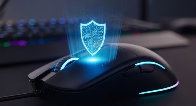 glowing blue shield symbol superimposed over a complex circuit board, representing concepts of cybersecurity and data protection in the digital age.