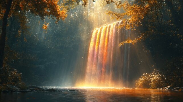 Massive prism pyramid splitting sunlight into rainbow waterfalls