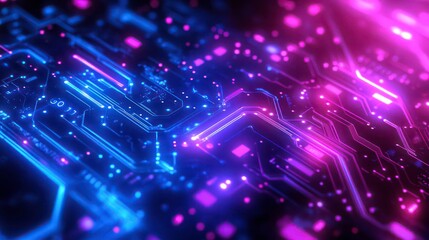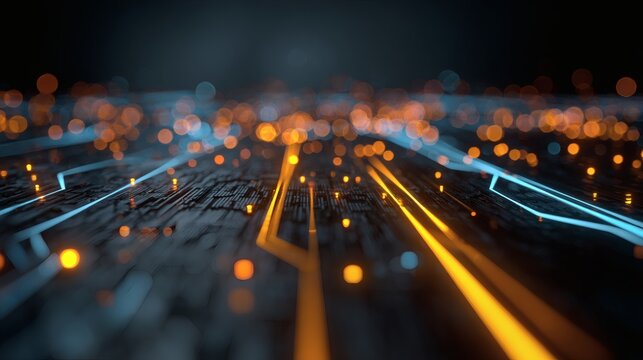 Abstract glowing circuit board with futuristic data flow and digital connections