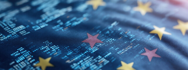 Digital data code overlay on circuit board background