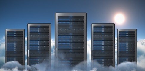 Number 55 in bold amidst serene cloudscape: digital connectivity concept