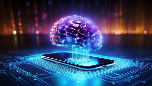 brain computer interface bci concept glowing digital brain hovers over smartphone symbolizing artificial intelligence and technology integration
