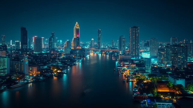 Futuristic smart city of bangkok with energy digitalization, wireless network infrastructure, and advanced connection technology over modern urban skyline