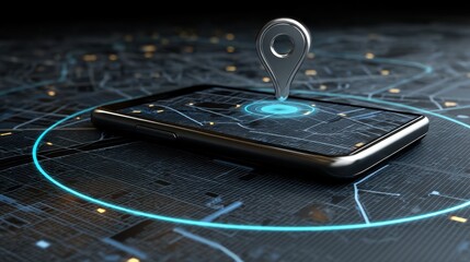 Mobile Phone Screen Displaying Geofencing Visualization with Location Pin Over Dark Background