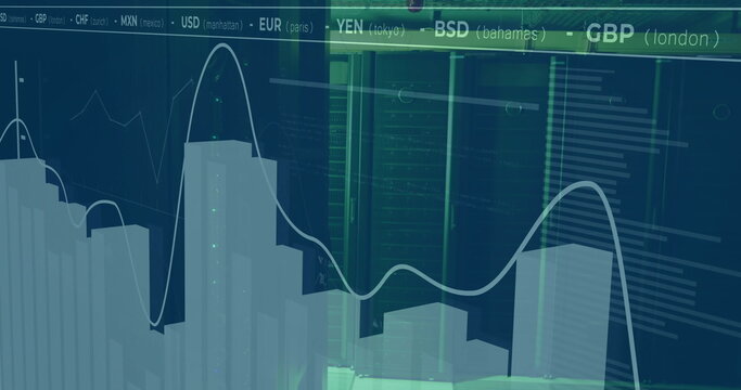 Image of data processing and chemical formula over caucasian businesswoman in server room