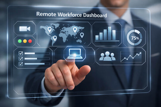 A person interacts with a digital interface displaying data management concepts through visual graphics, highlighting modern technology role in workspace organization and productivity. Gantry