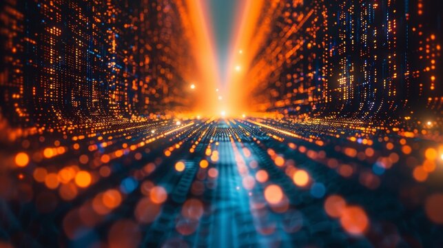 Dynamic light trails encircling digital data stream