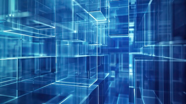 Abstract digital background with a blue cube grid, and a futuristic style.