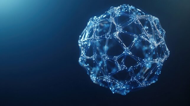 Abstract digital sphere with glowing network pattern on blue background