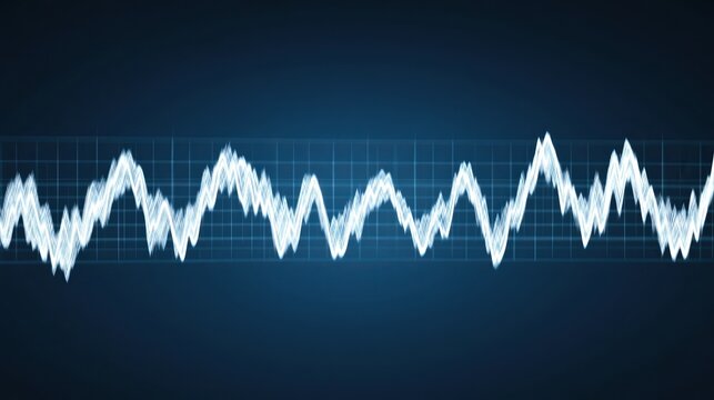 A digital representation of a fluctuating wave pattern on a dark background, suitable for illustrating concepts like sound waves, data analysis, or signal processing in technology and education,