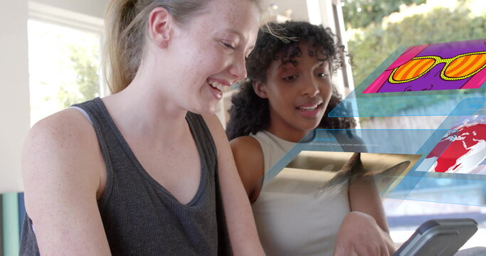 Image of data processing over diverse women using tablet