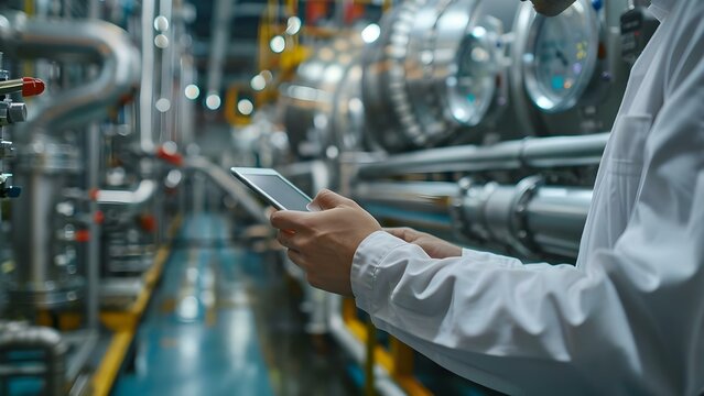 Engineer Using Digital Tablet in Manufacturing Automation Technology Concept