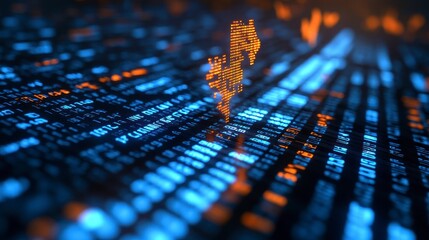 Digital data processing on glowing blue lightscape