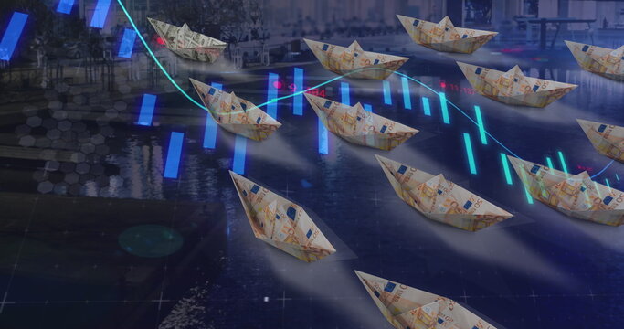 Digital data processing with financial arrows and graph