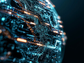 Exploring the future a stunning blue hologram globe illuminated by intricate data streams representing global connectivity and technology trends