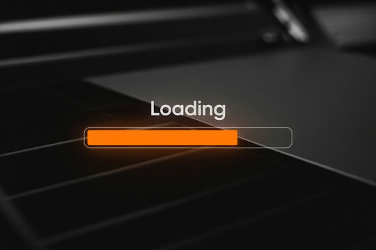 Closeup of a persons finger touching a loading bar on a laptop screen, symbolizing progress, technology, and digital processes in a modern, abstract, and futuristic concept