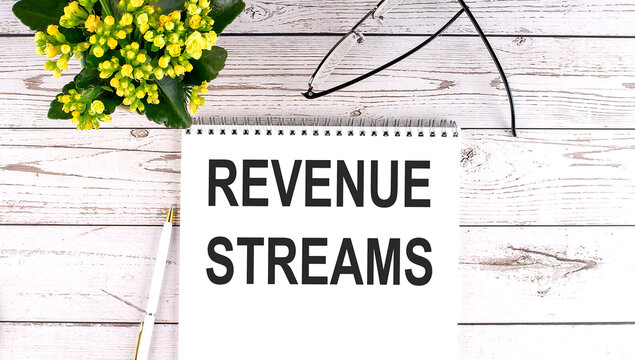 REVENUE STREAMS text concept write on notebook on wooden background