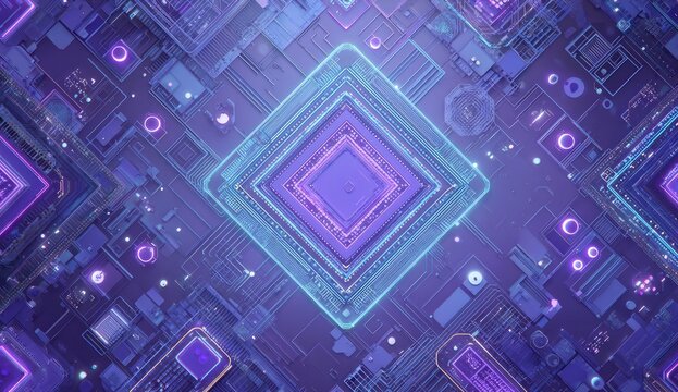 Digital Data Processing And Technology Visualization With Purple Background Images