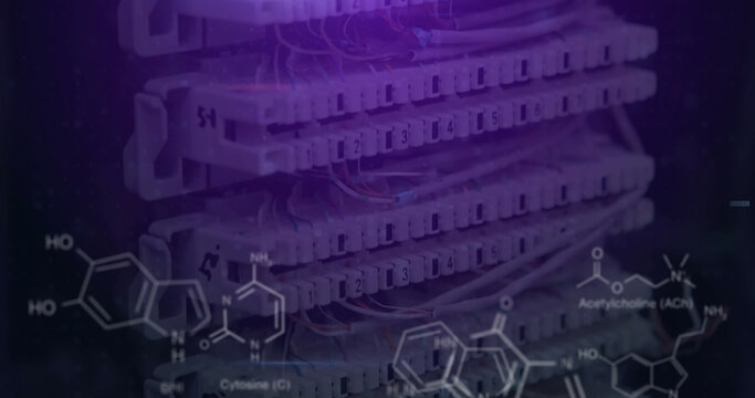 Data processing concepts in server room with digital graphics
