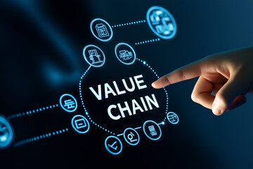 Data science and data analysis computation on server CPU or GPU. Concept with finger touching charts and electronic circuit on virtual screen. Business analytics graphs and KPI. Data center.