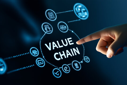 Dynamic business analysis scene with hands on laptop keyboard and vibrant data visualizations, showcasing insights and trends in modern financial workspace. Impute