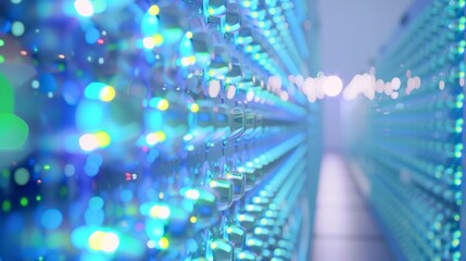 A high-tech data center with rows of server cabinets