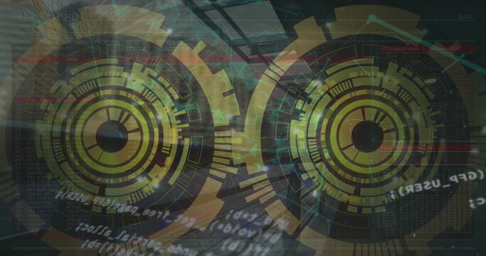 Futuristic data processing interface with digital graphics