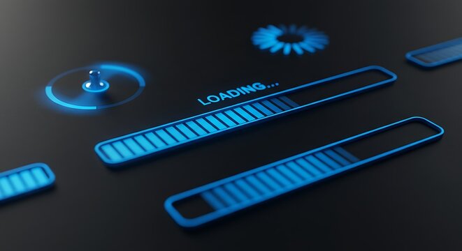 Abstract rendering of a digital progress bar with glowing blue elements