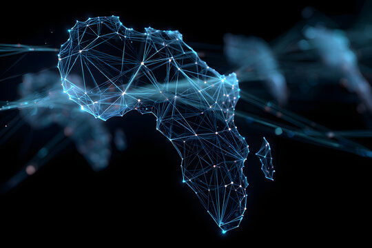 africa network map with connected server nodes and adark theme background - Geerative AI