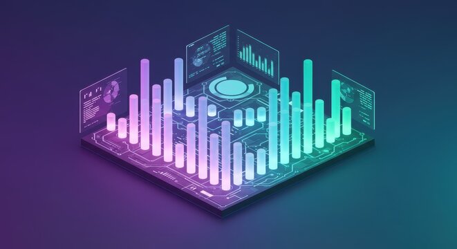 Abstract Isometric Data Visualization Platform with Futuristic User Interface Elements