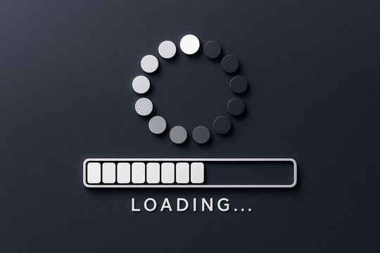 Loading Data: A digital loading graphic, a circular array of dashes, spinning gracefully, the text Loading data... suggests the ongoing process of information retrieval and progress.