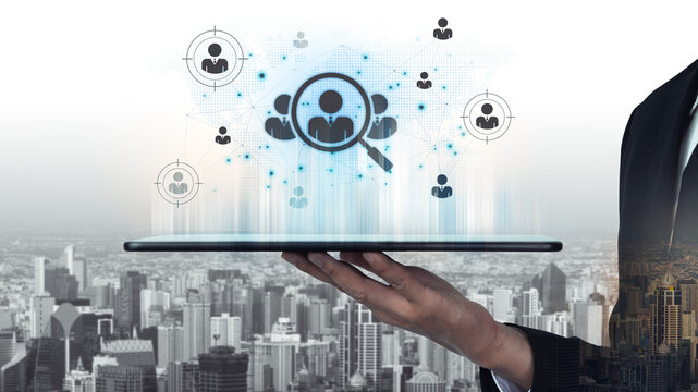Concept of global talent acquisition and human resources. The process of headhunting and searching for qualified candidates worldwide to build a professional corporate workforce. Fermion