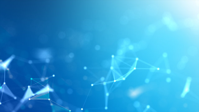 Abstract background Dot and connect line for cyber technology futuristic and network connection concept with dark and grain processed wide screen ratio.