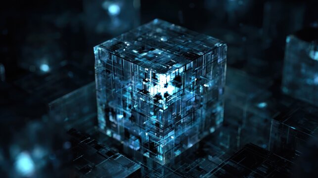 Translucent cube on digital grid