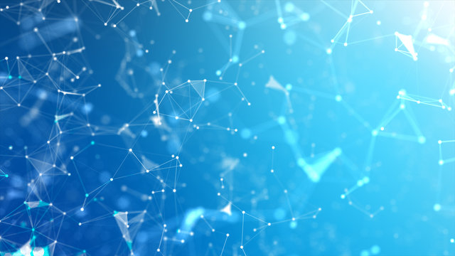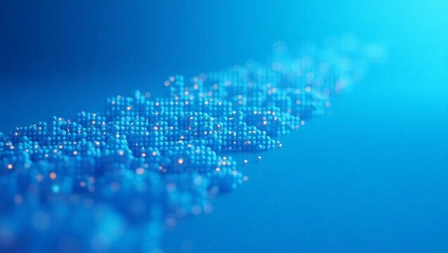 Futuristic data stream visualization with glowing particles on a gradient blue background