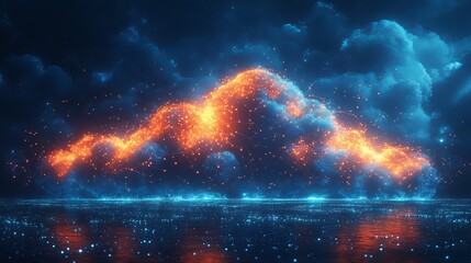 Futuristic digital data processing with fiery elements